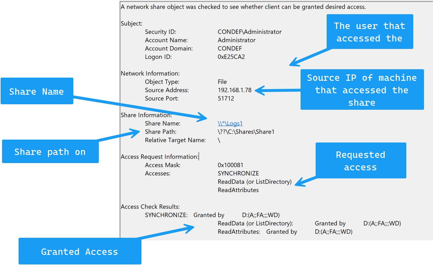 | stats values(RelativeTargetName) as Filenames by IpAddress,ShareNameAt this point, we have all the information we need in order to craft hunts / alerts / detections for sensitive file share access.